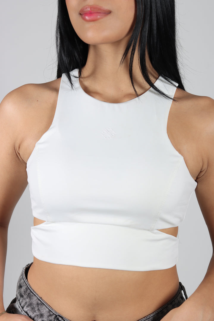 Blusa Marfil con Cortes y Banda en Cintura, diseñada en una silueta ajustada que resalta la figura. Lleva un detalle de cortes que estructuran la prenda y una banda en la cintura que define mejor el fit. En el pecho incorpora el logo de la marca en semi alta.