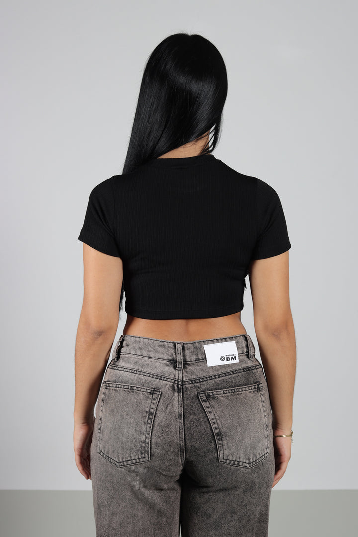 Blusa Negra Básica de Manga Corta, diseño limpio y cómodo, pensada para uso diario. Silueta sencilla y versátil que funciona con cualquier outfit.