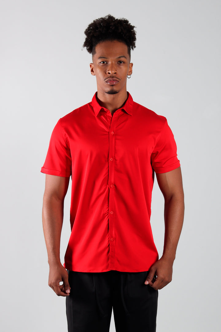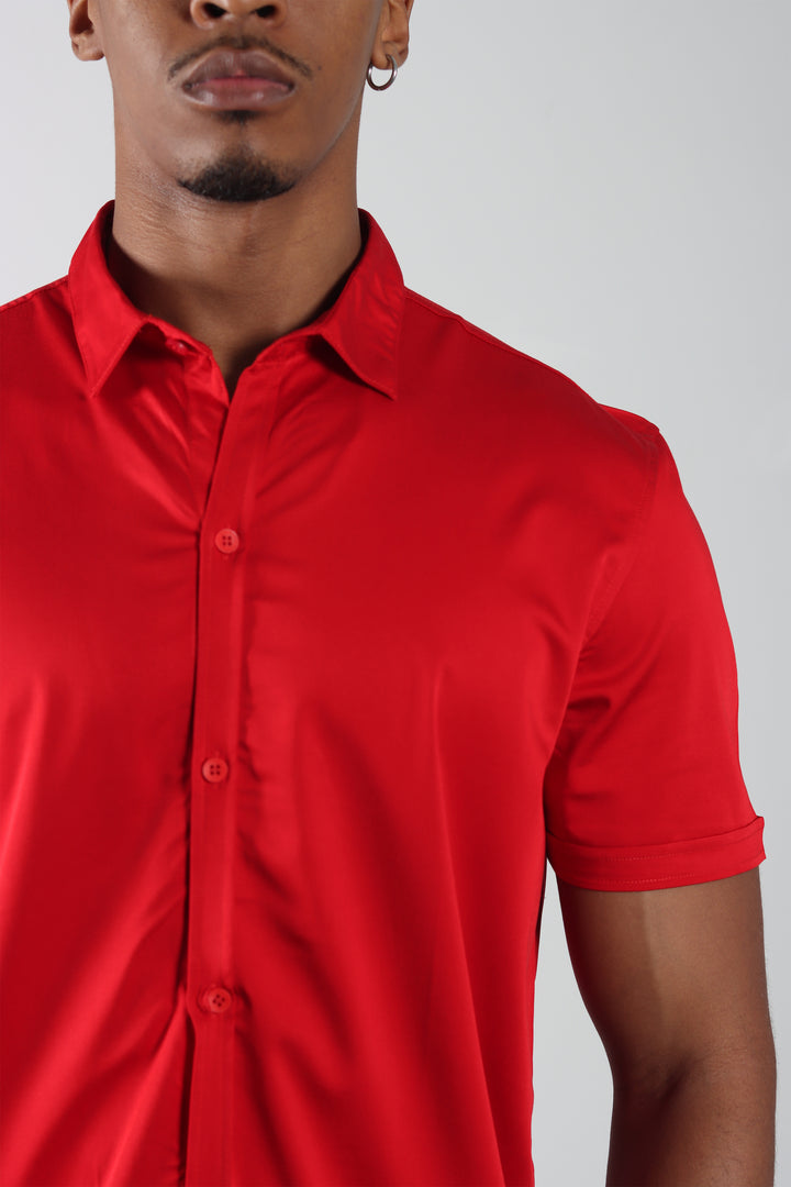 Camisa clásica solo fondo color cherry, silueta - Slim Fit - con Cuello Luigui. Confeccionada en tela con composición - 97% rayón viscosa y 3% espandex - que proporciona mayor calidad, frescura y comodidad.