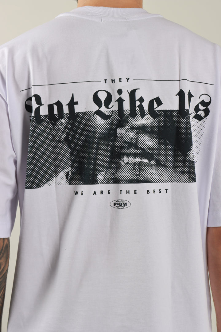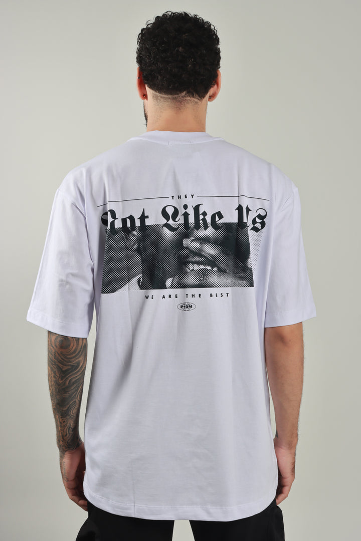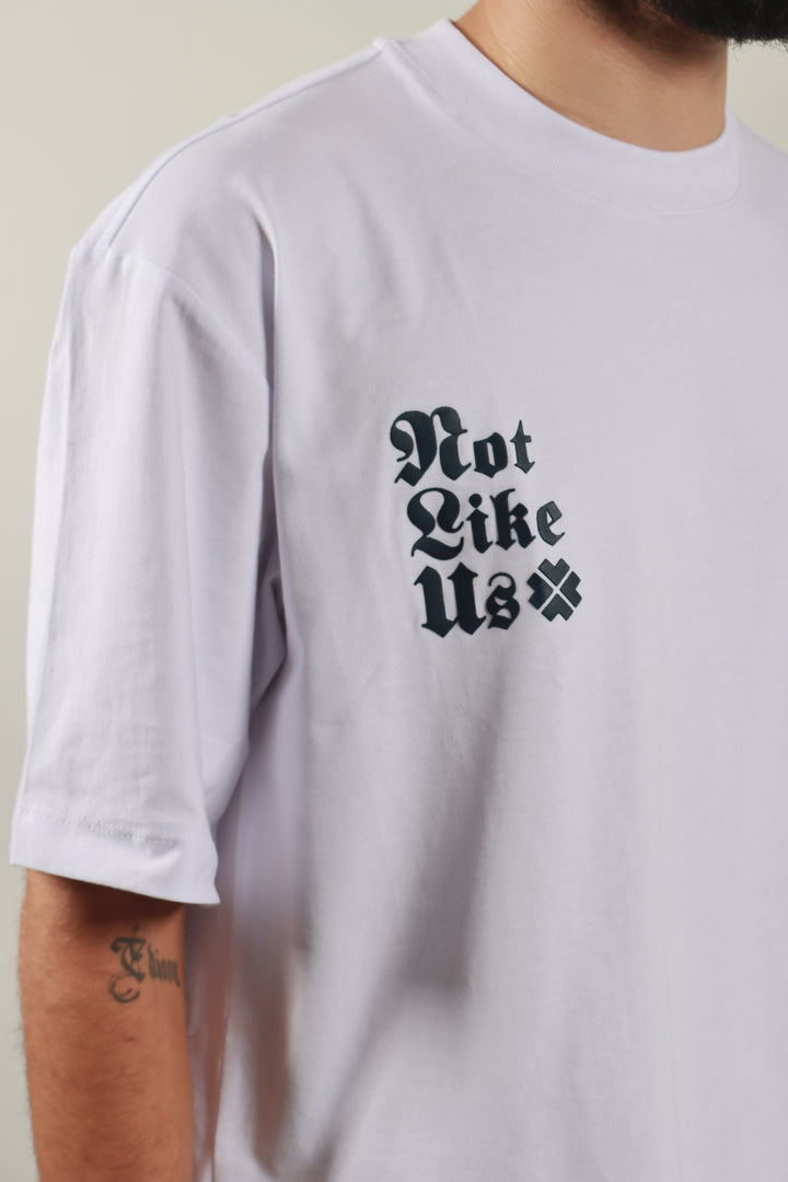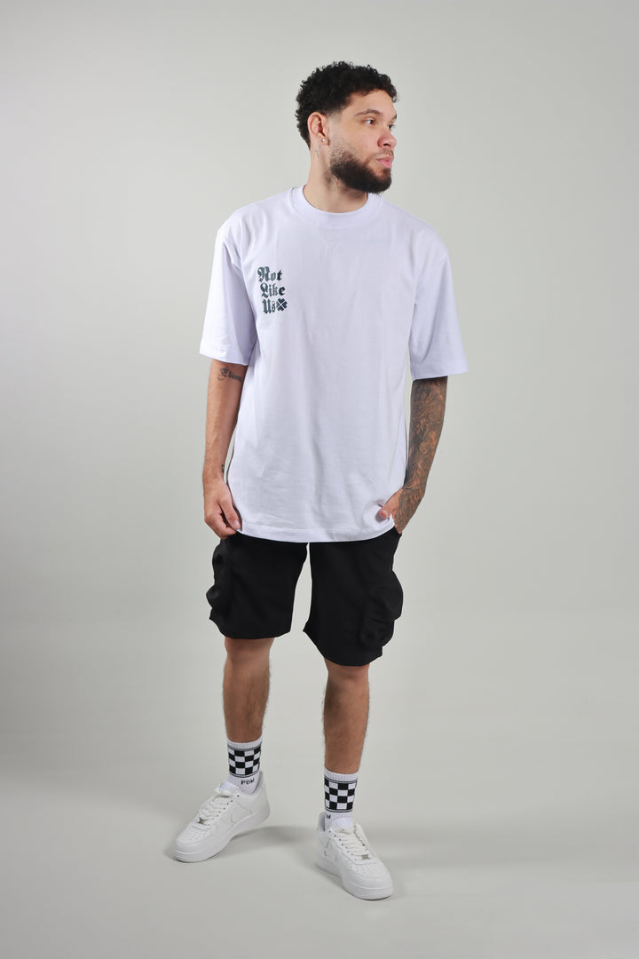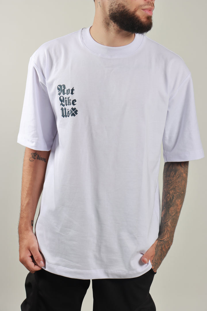 Camiseta manga corta blanca con estampado en frente - Tela gruesa 240gr - Silueta Oversize.