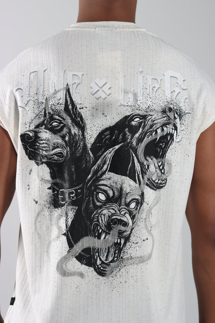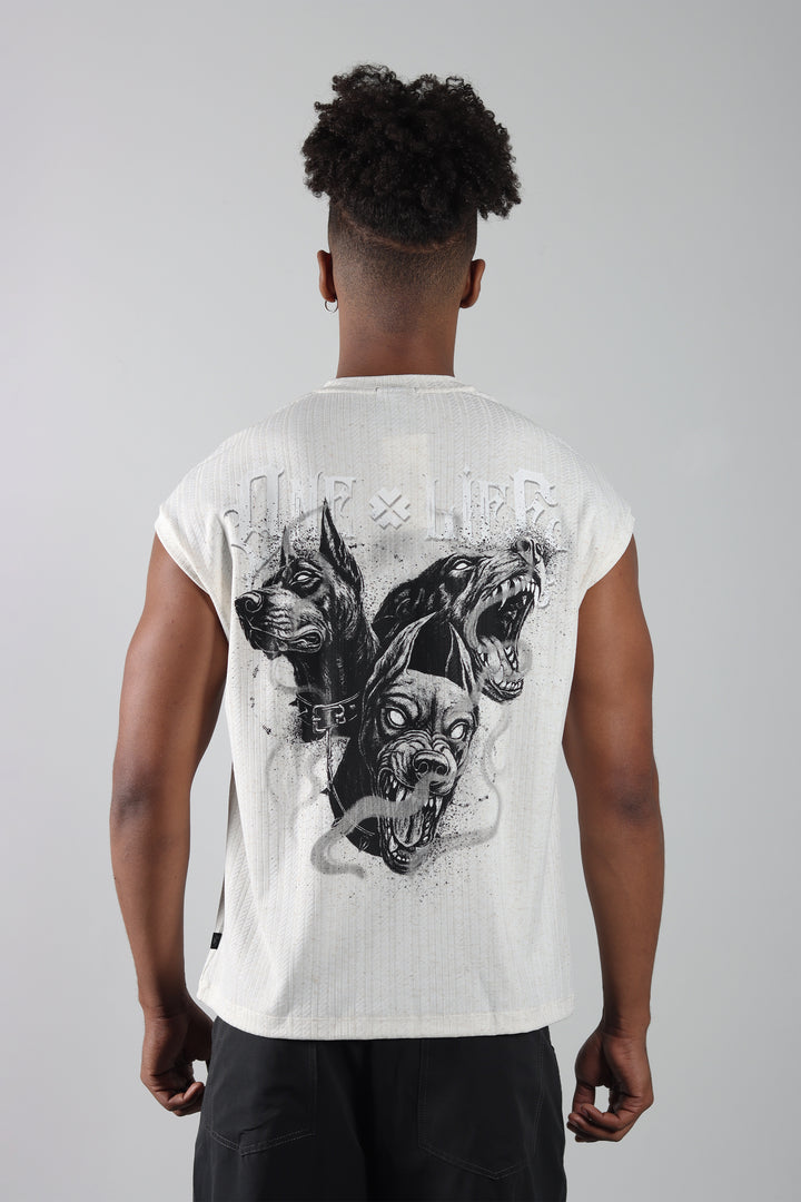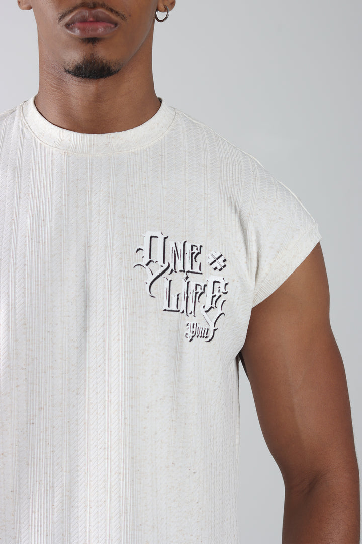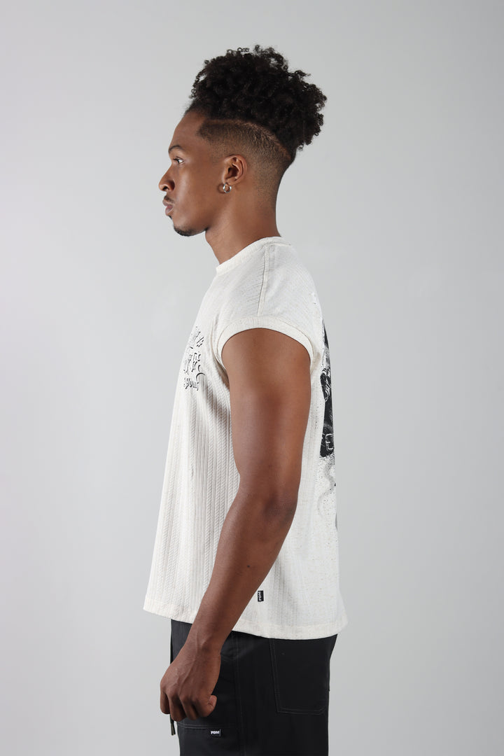 Camiseta Marfil Regular Tank, con estampado en el frente y en la espalda. Silueta clásica, ligera y fácil de usar.