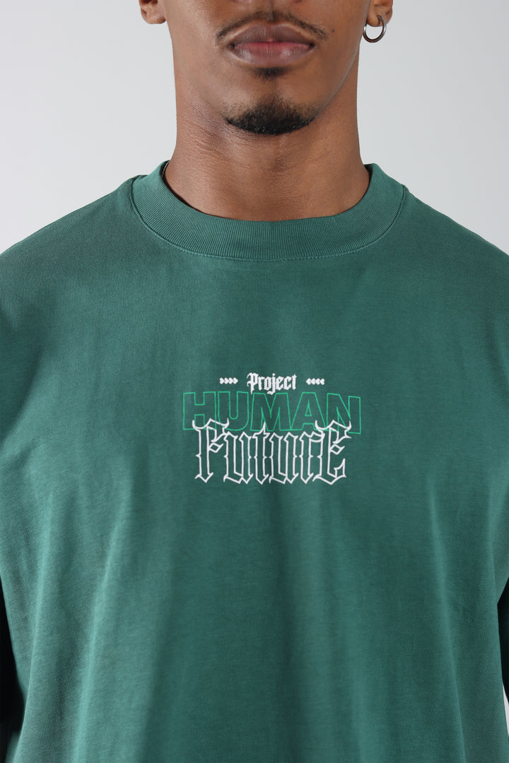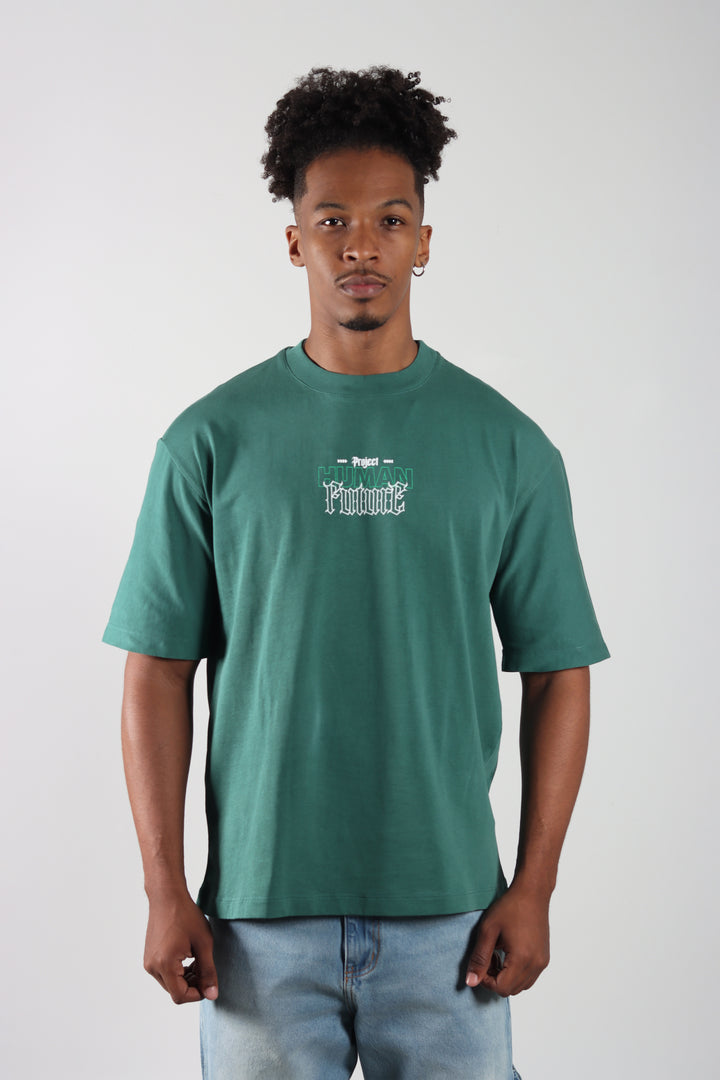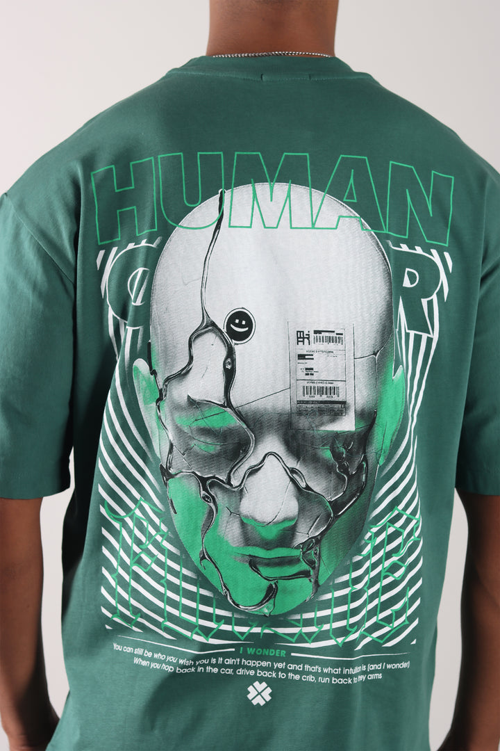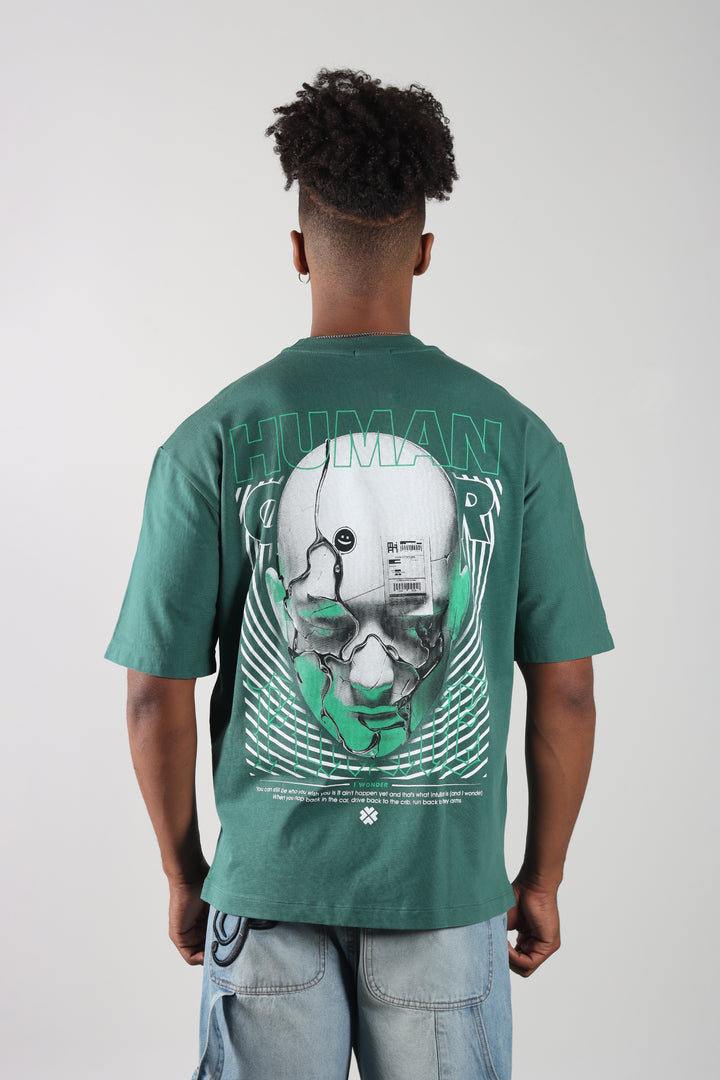 Camiseta Verde Botella Oversize Estampada