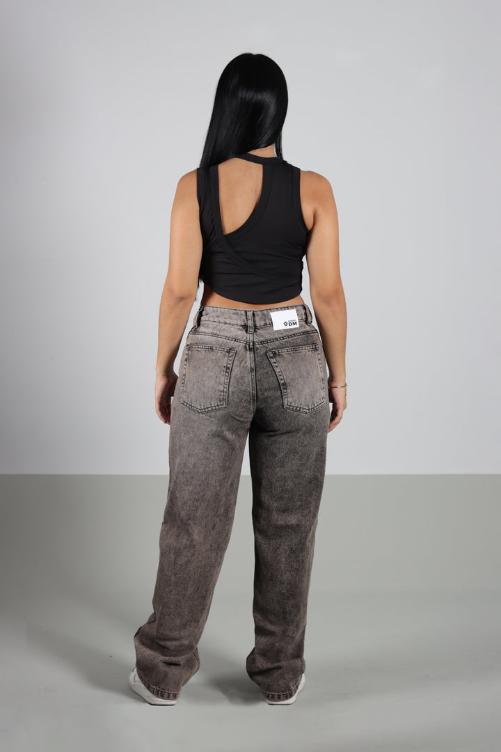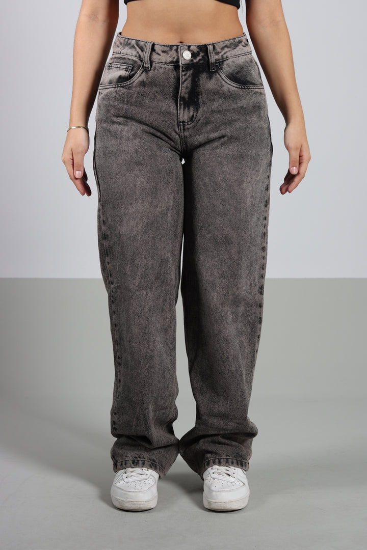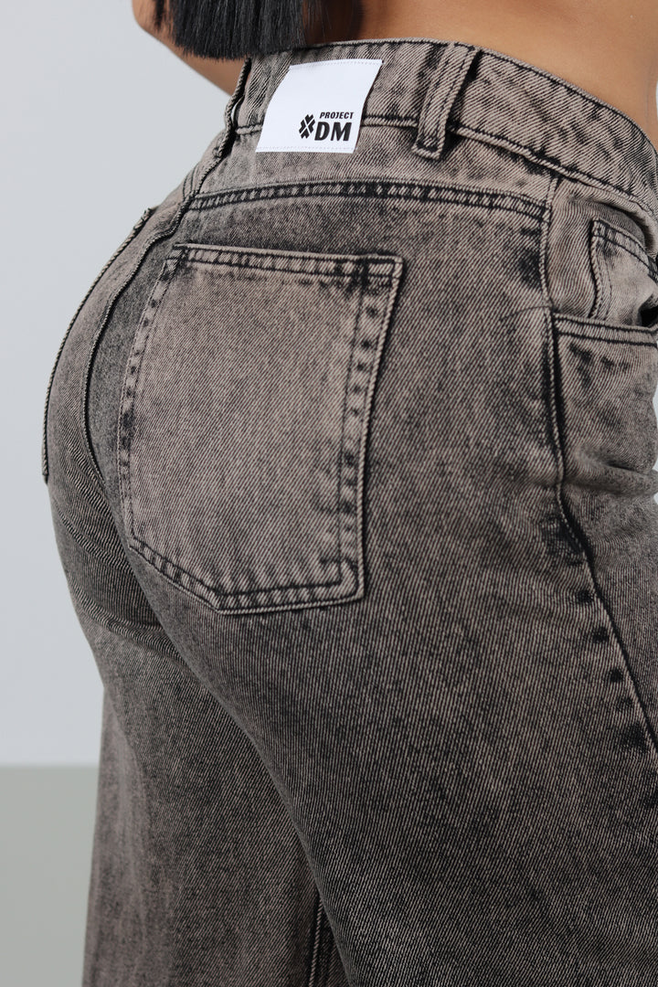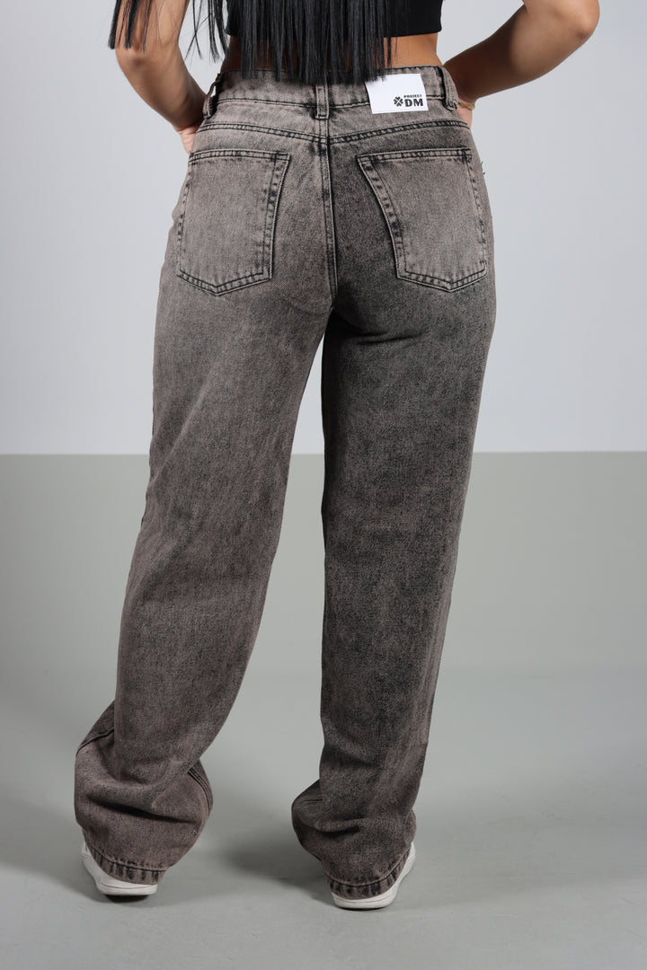 Pantalón Chocolate Recto, con un tono base marrón que presenta desgastes visibles en grises y negros. La tela tiene una textura de puntos que le da un aspecto más profundo y gastado, manteniendo una silueta recta y limpia.