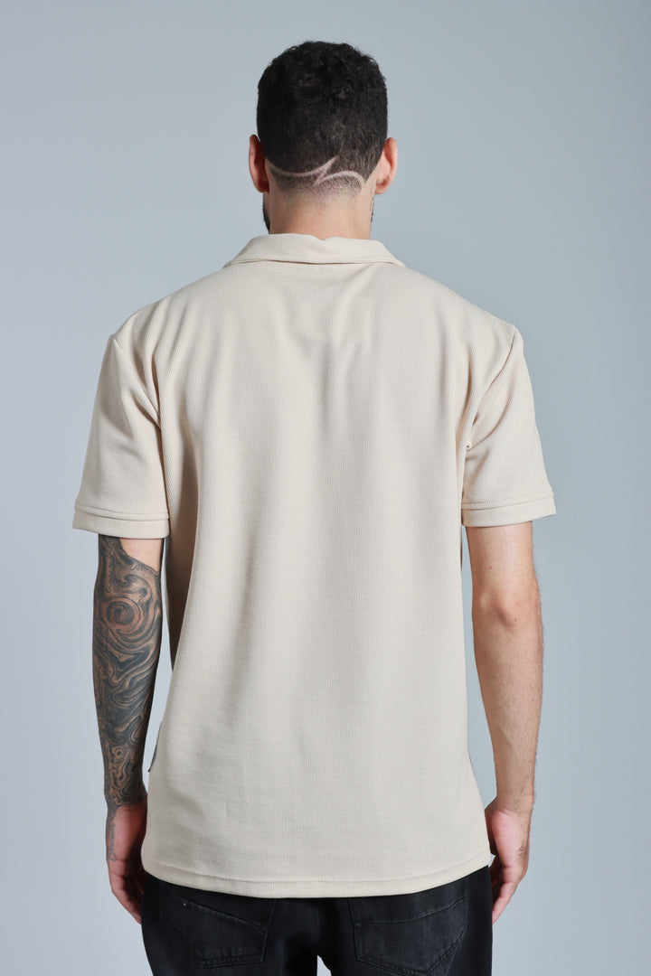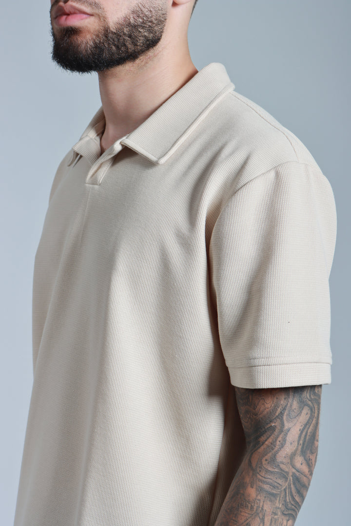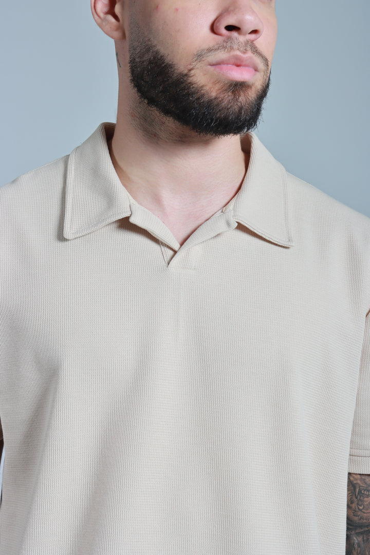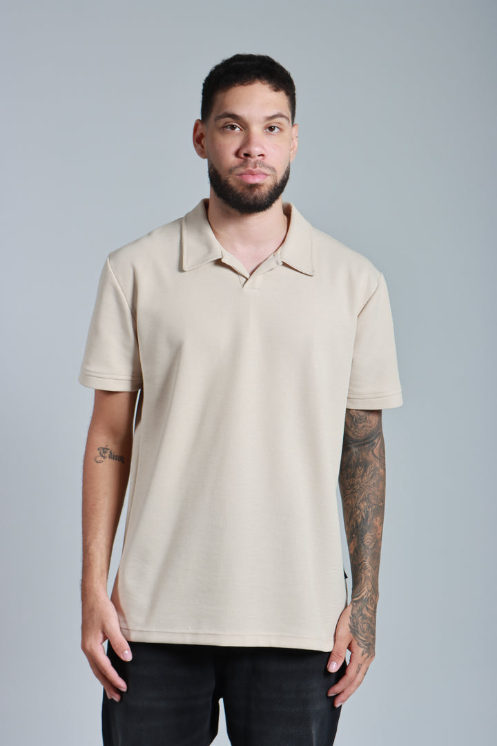 Polo beige con textura galleta - Cuello sport - Silueta Slim fit