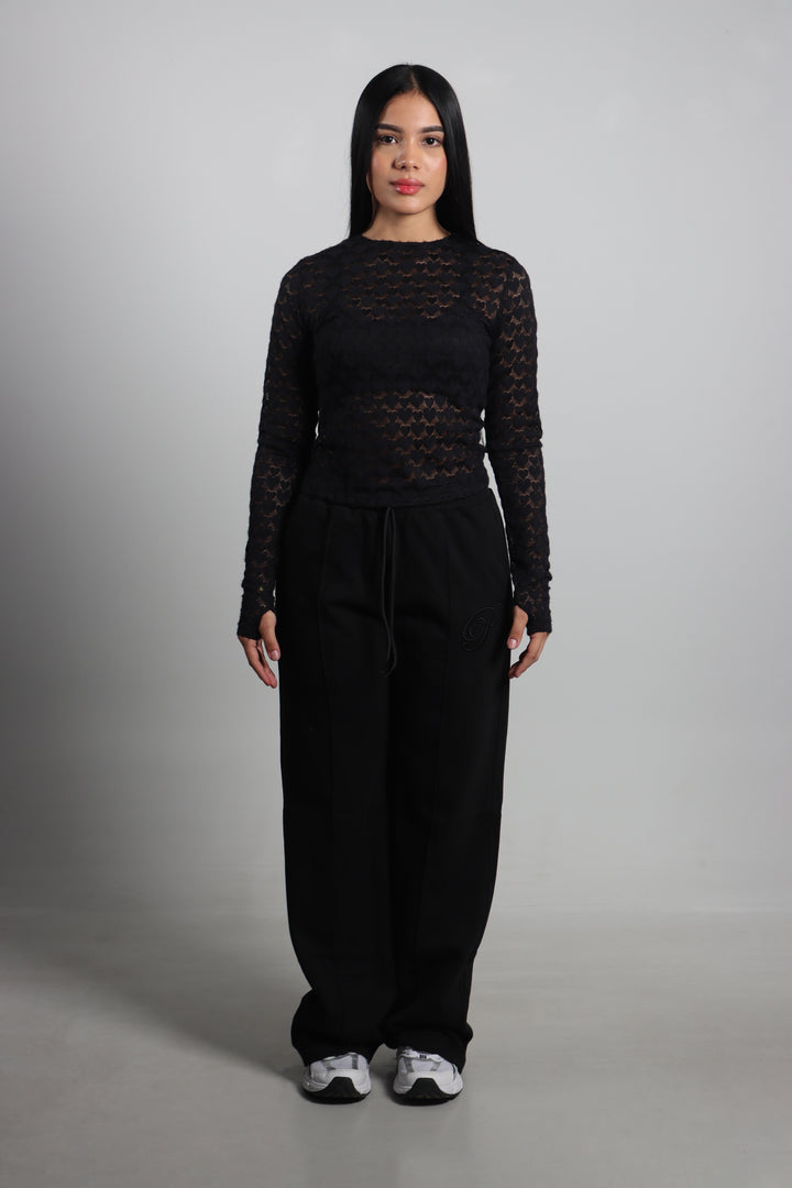 Sudadera de silueta amplia en color negro. Detalle de vena decorativa que le da un acabado distintivo. Cómoda, suelta y con un fit relajado para todos los días.